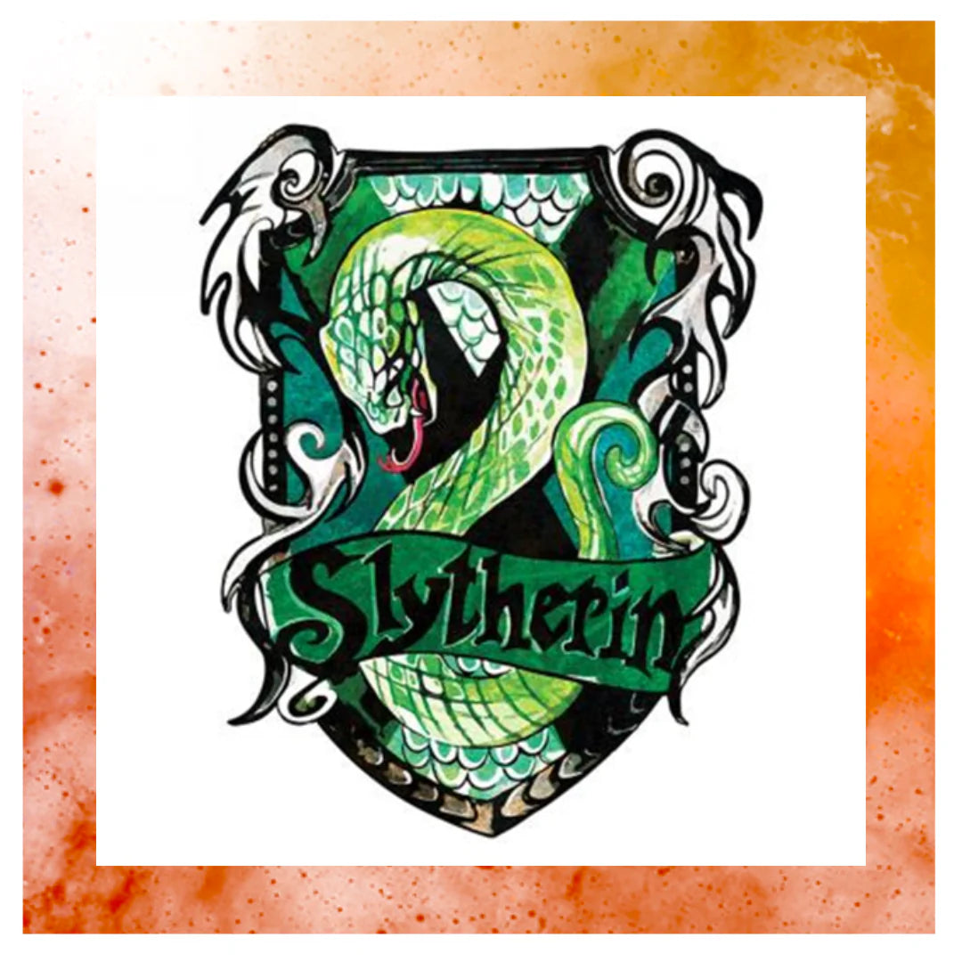 Slytherin crest puzzle containing pieces with shapes related to the Harry Potter theme.